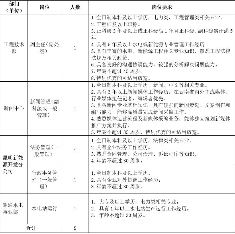 國家電投集團云南國際電力投資有限公司社會招聘公告