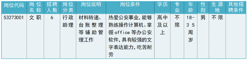 本次招錄共設(shè)1個(gè)崗位,男性6人。詳情請(qǐng)關(guān)注西“西盟警方”微信公眾號(hào)或西盟長(zhǎng)安網(wǎng)(