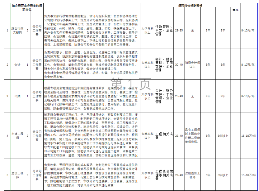 云南省勞動(dòng)力中心市場(chǎng)有限公司根據(jù)云南省社會(huì)事業(yè)發(fā)展有限公司第三分公司用工需要,現(xiàn)面向社會(huì)公開(kāi)招聘9名勞務(wù)派遣制工作人員(綜合行政文秘崗、會(huì)計(jì)、出納、土建工程師、造價(jià)工程師),錄用后派遣到云南省社會(huì)事業(yè)發(fā)展有限公司第三分公司工作。