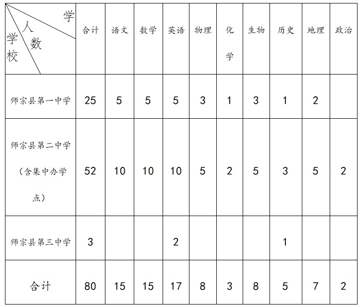 為加強(qiáng)師宗縣教師隊(duì)伍建設(shè),經(jīng)縣委、縣政府同意,曲靖市師宗縣教育體育局決定面向全國(guó)師范大學(xué)類(lèi)本科大學(xué)(不包含師范類(lèi)學(xué)院)(名單見(jiàn)附件1)2020年畢業(yè)的優(yōu)秀學(xué)生,公開(kāi)招聘中學(xué)教師80名,現(xiàn)公告如下。