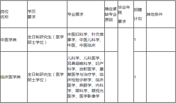 (二)市婦幼保健院。引進(jìn)崗位2個(gè),其中中醫(yī)學(xué)類1個(gè),臨床醫(yī)學(xué)類1個(gè)。