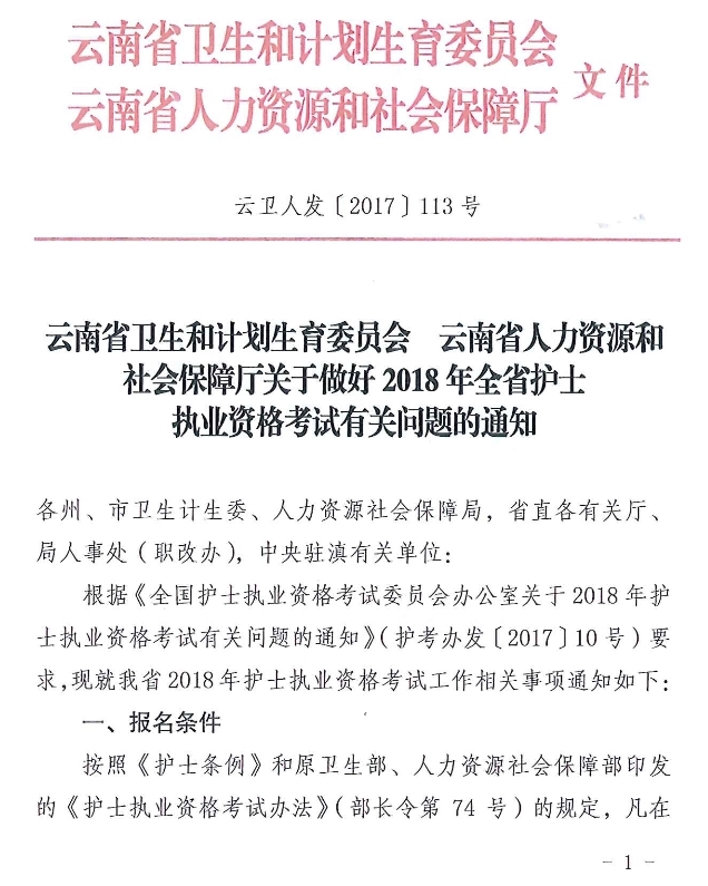 云南省衛(wèi)計(jì)委云南省人社廳關(guān)于做好2018年全省護(hù)士執(zhí)業(yè)資格考試有關(guān)問題的通知
